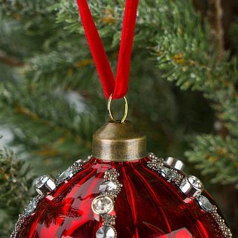 Ёлочная игрушка Ball With Rhinestones Red 8 cm