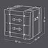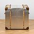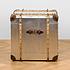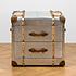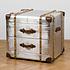 Углы тумбы декорированы кожаными накладками, прикреплёнными металлическими заклепками. А декоративные деревянные детали напоминают прочные ремни, которыми перетягивали чемоданы в конце XIX - начале XX века. По бокам тумбы находятся кожаные ручки, за которые её удобно перемещать из комнаты в комнату или даже брать с собой в путешествия. Два выдвижных ящика позволяют хранить необходимые мелочи. Ручки ящиков также сделаны из натуральной кожи и имитируют ручки ретро-чемоданов.