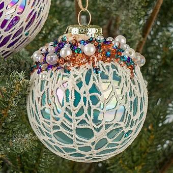 Этот бронзовый шар, чуть тронутый морозным инеем золотистого цвета, добавит новогоднему декору обаяние стиля ар-деко. Выразительная ёлочная игрушка особенно красива на фоне зелёной хвои.