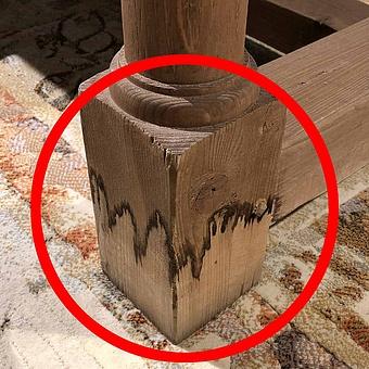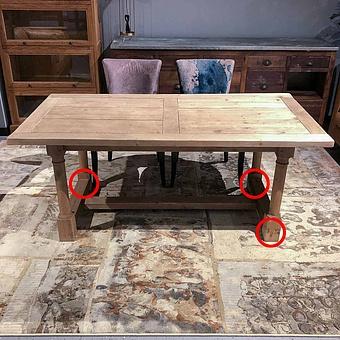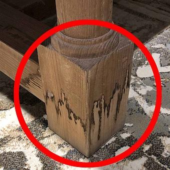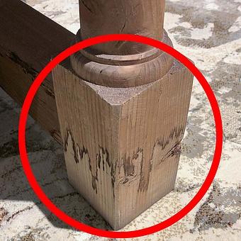 Естественное растрескивание может произойти со временем и не является признаком дефекта. Иногда древесину обрабатывают локально, чтобы выровнять некоторые изменения цвета, вызванные атмосферными воздействиями. При чистке такая древесина может оставлять следы на влажных салфетках. Каждый продукт готовится индивидуально, поэтому его цвет и фактура могут варьироваться от кусочка к кусочку.