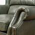 Роскошь натуральной кожи обивки подчеркнута металлическими гвоздиками. В конструкцию кресла входит пружинная система. Она долговечна, выдерживает большие нагрузки и подстраивается под форму тела.