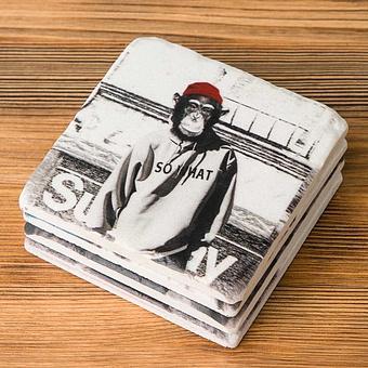 Набор из пяти круглых подставок под стаканы и чайник